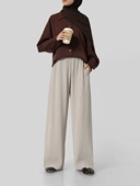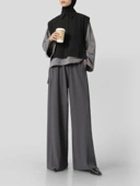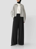 1. Celana panjang loose dengan pinggang karet dan detail unfinished di bagian bawah.