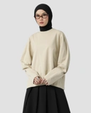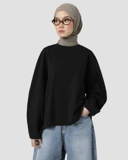 5. Leher kerah bulat yang pas dan nyaman sehingga leher tetap tertutup saat menggunakan style hijab yang diikat ke belakang.