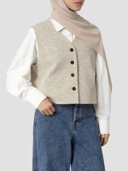 1. Cropped lapelless vest for a structured but relaxed look.