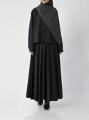 1. Rok lebar dengan detail pleated di bagian depan dan belakang.