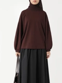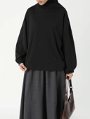 3. Leher kerah bulat yang pas dan nyaman sehingga leher tetap tertutup saat menggunakan style hijab yang diikat ke belakang.