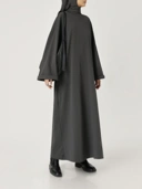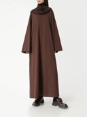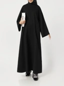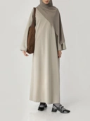 3. Leher kerah bulat yang pas sehingga leher tetap tertutup saat menggunakan style hijab yang diikat ke belakang.
